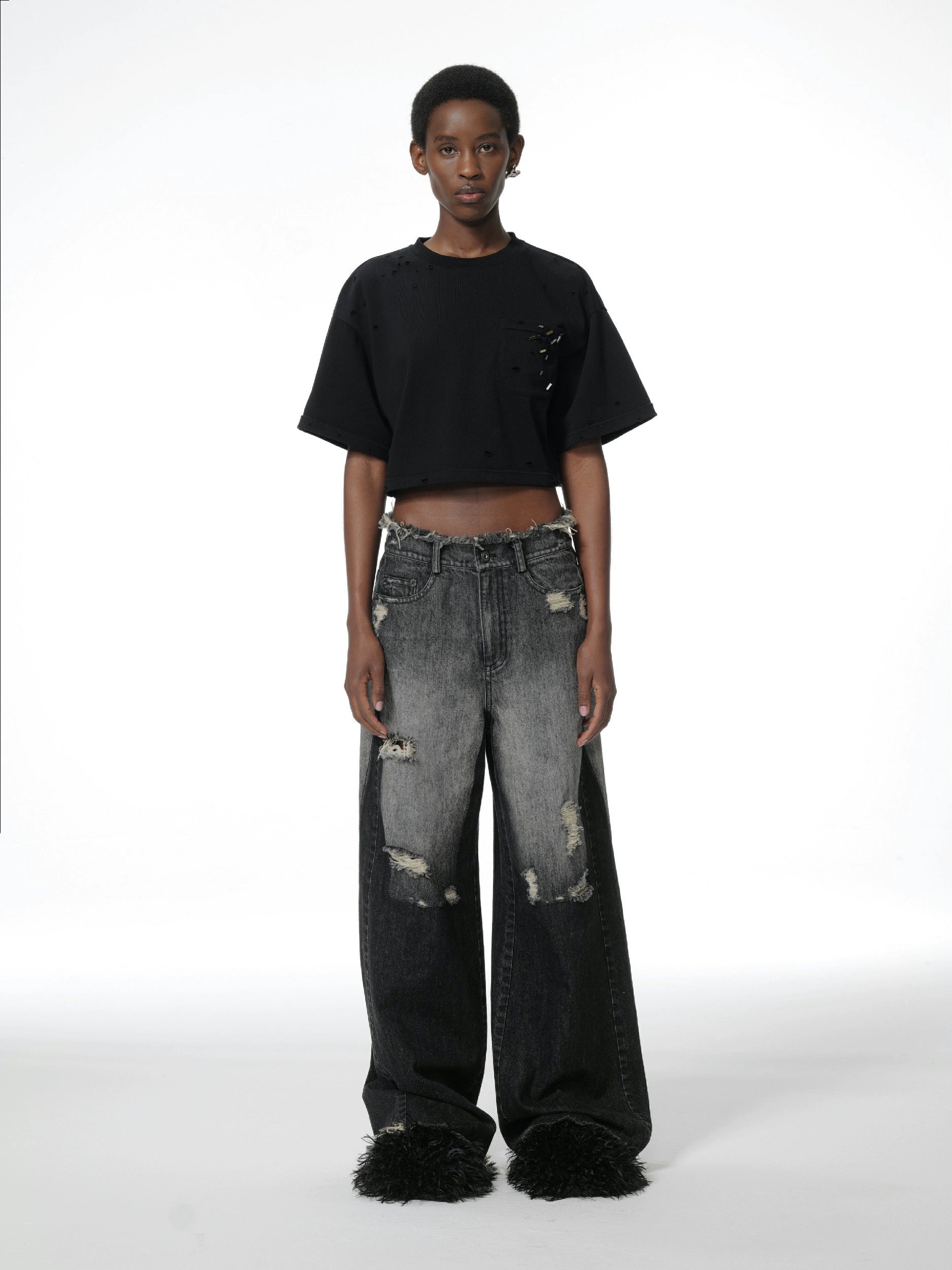 - High-quality washed denim